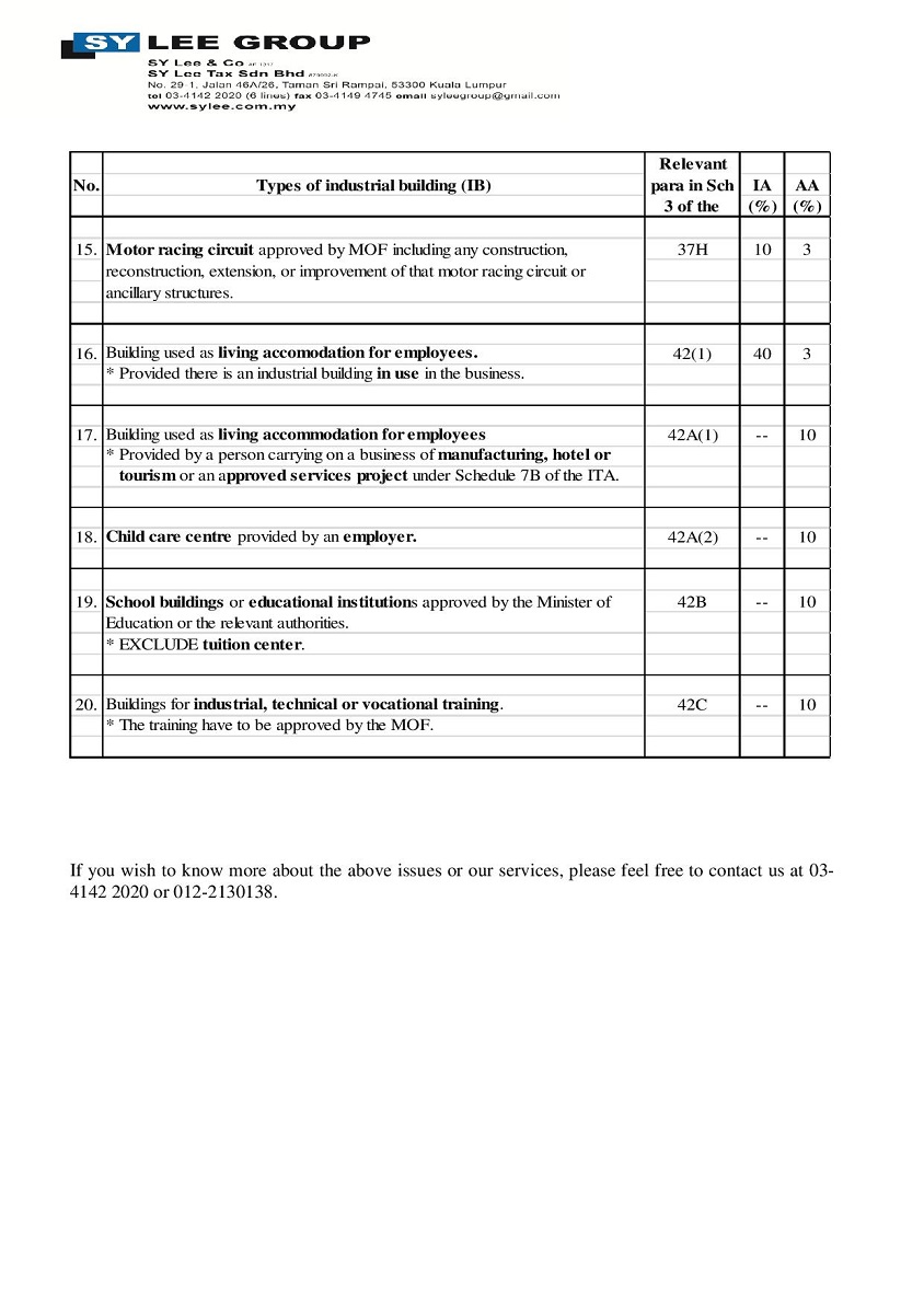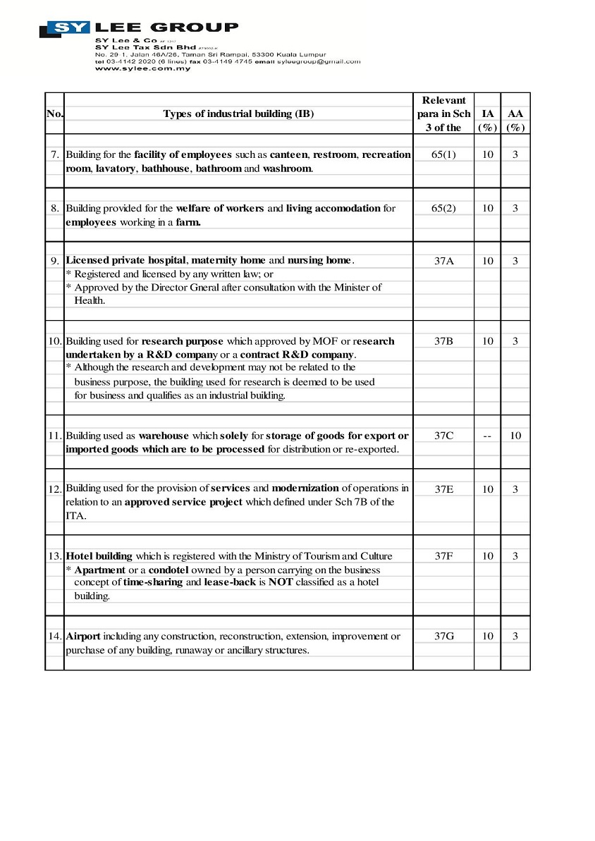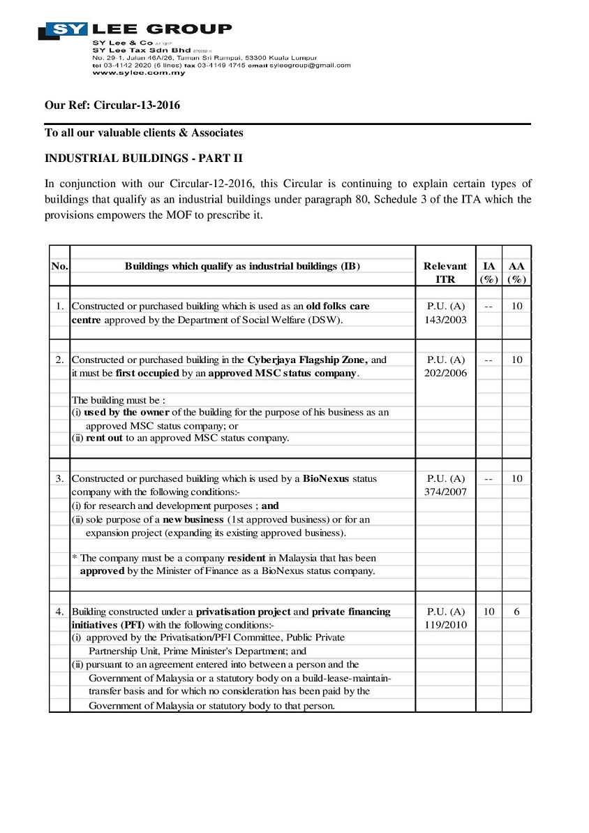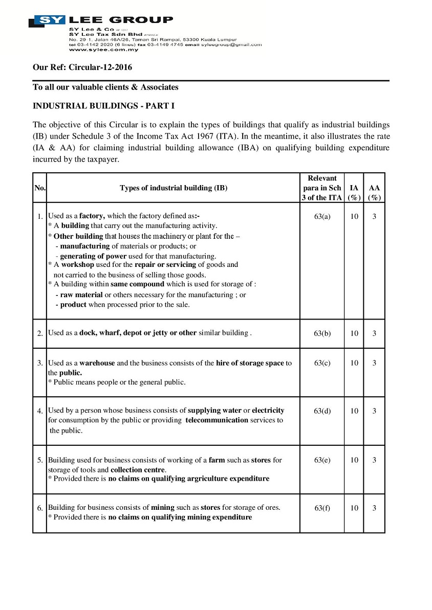 TAX UPDATE - INDUSTRIAL BUILDINGS