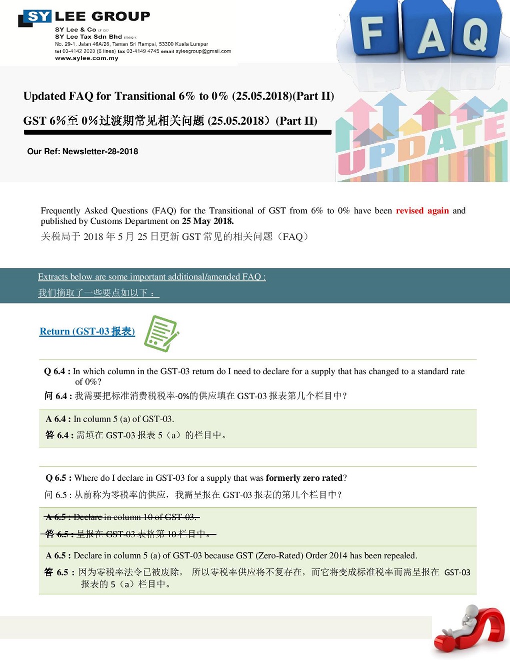 Newsletter-28-2018 Updated FAQ for transitional 6% to 0% (25.05.2018)(Part II) & Newsletter-29-2018 - Tax Investigation Framework