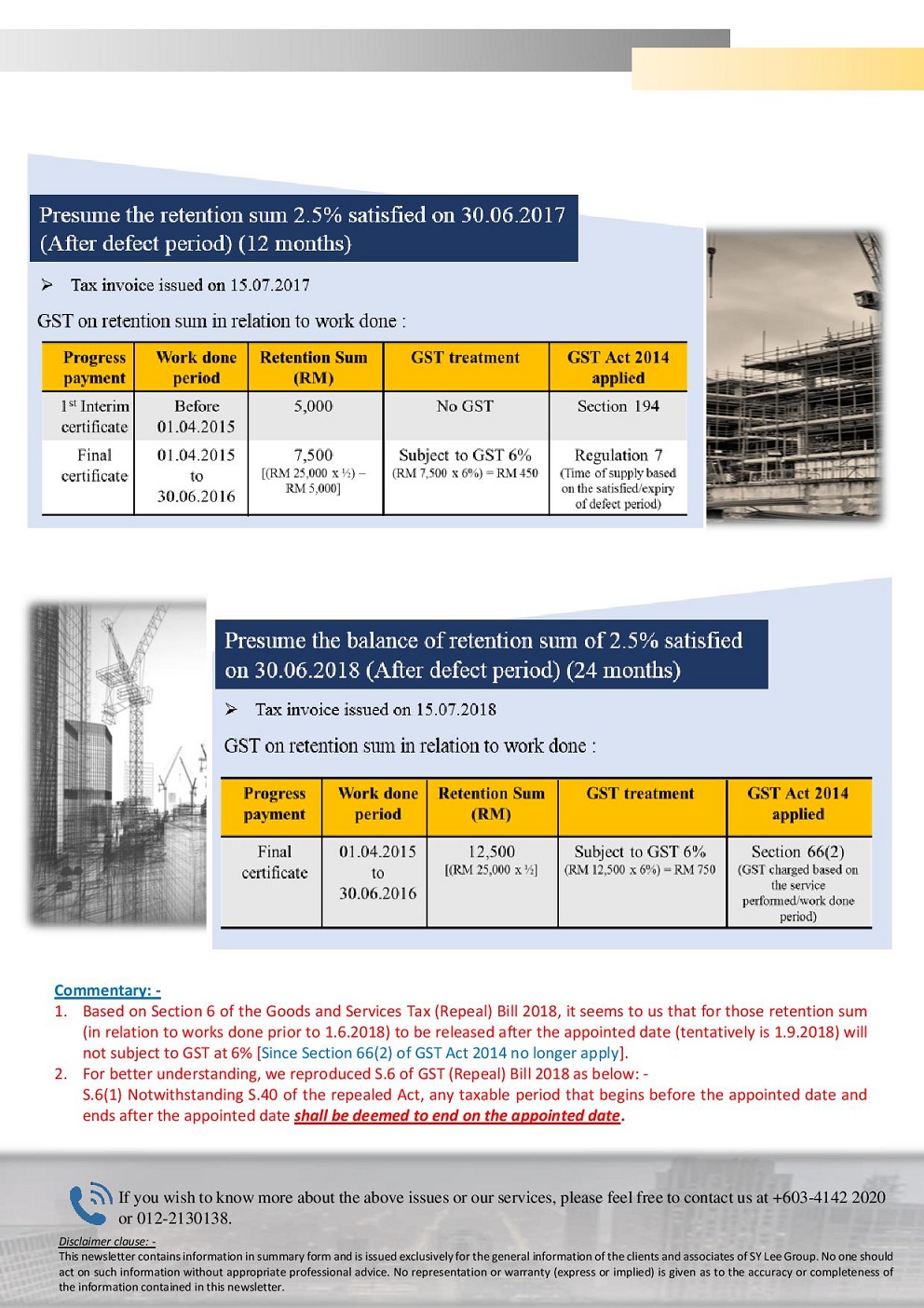 Newsletter-37-2018 - GST issue on retention sum of construction company