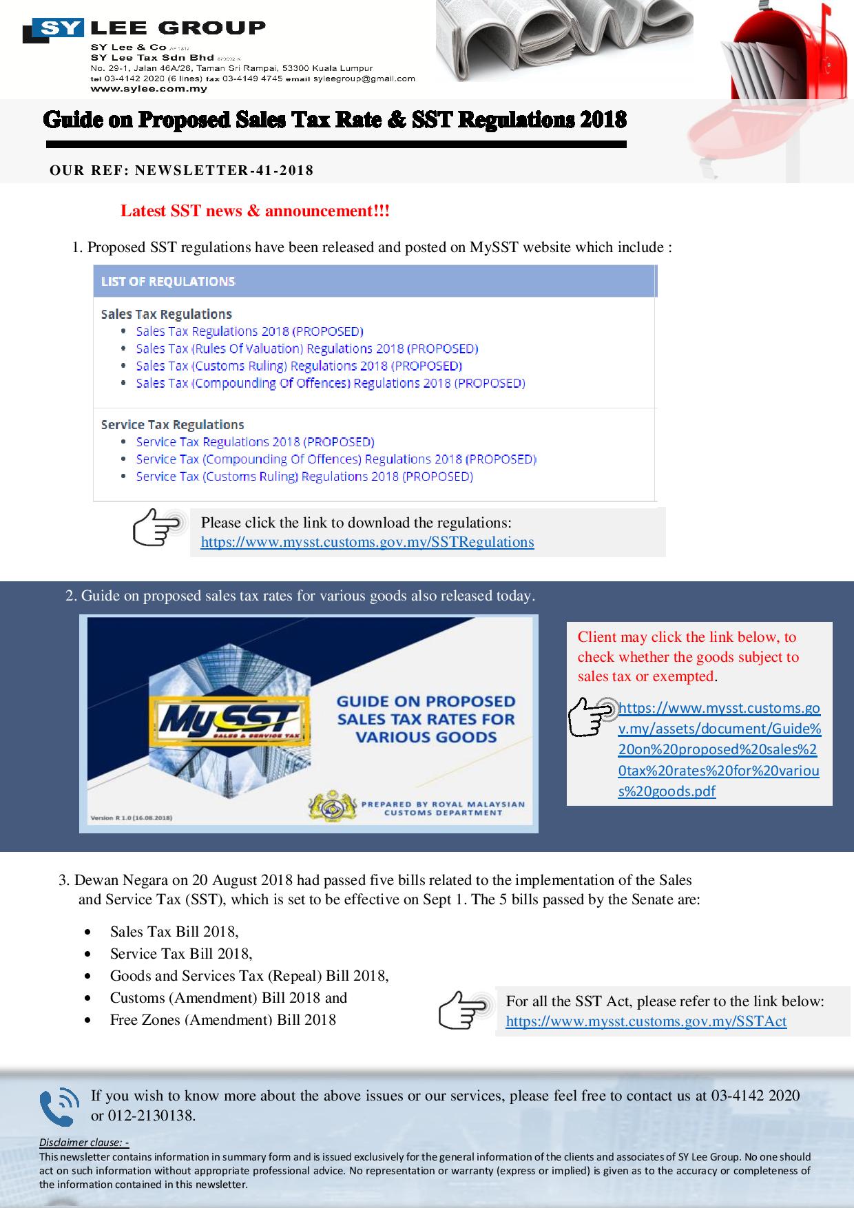 Newsletter-41-2018 - Guide on Proposed Sales Tax Rate & SST Regulations 2018
