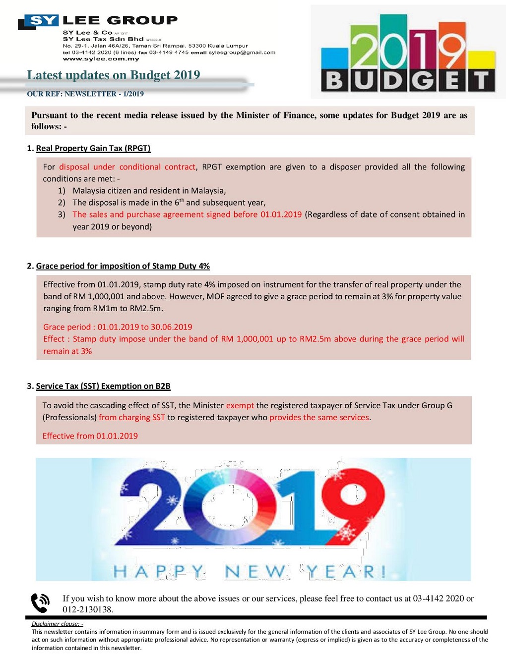 Newsletter-1-2019-Latest update on Budget 2019