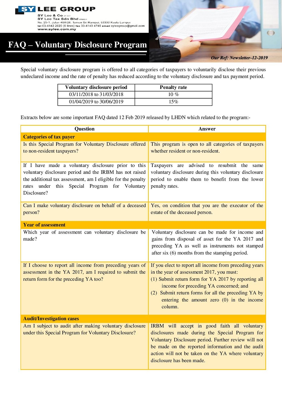 Newsletter-12-2019-FAQ Voluntary Disclosure Program