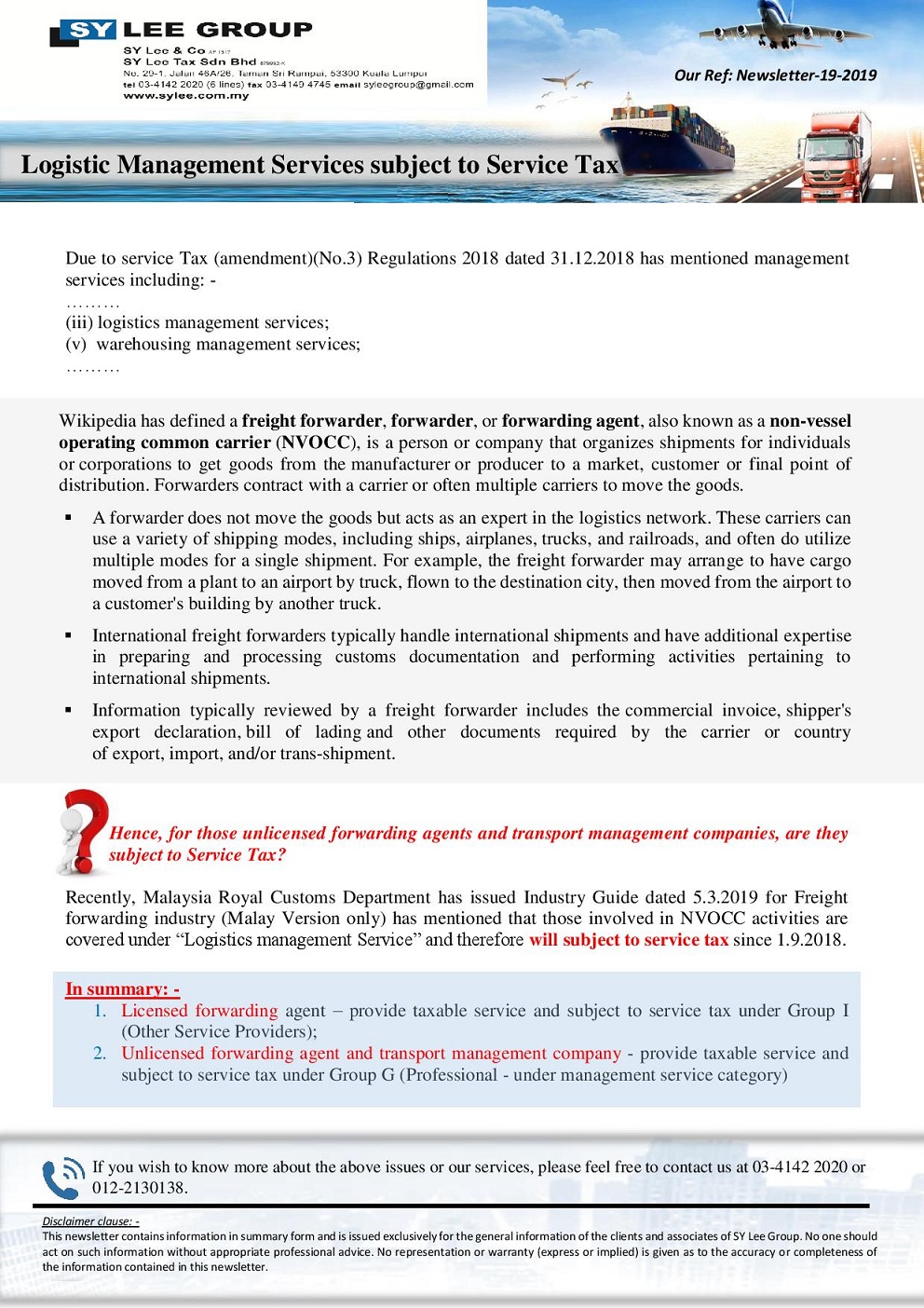 Newsletter-18-2019-Logistics Management Services subject to Service Tax