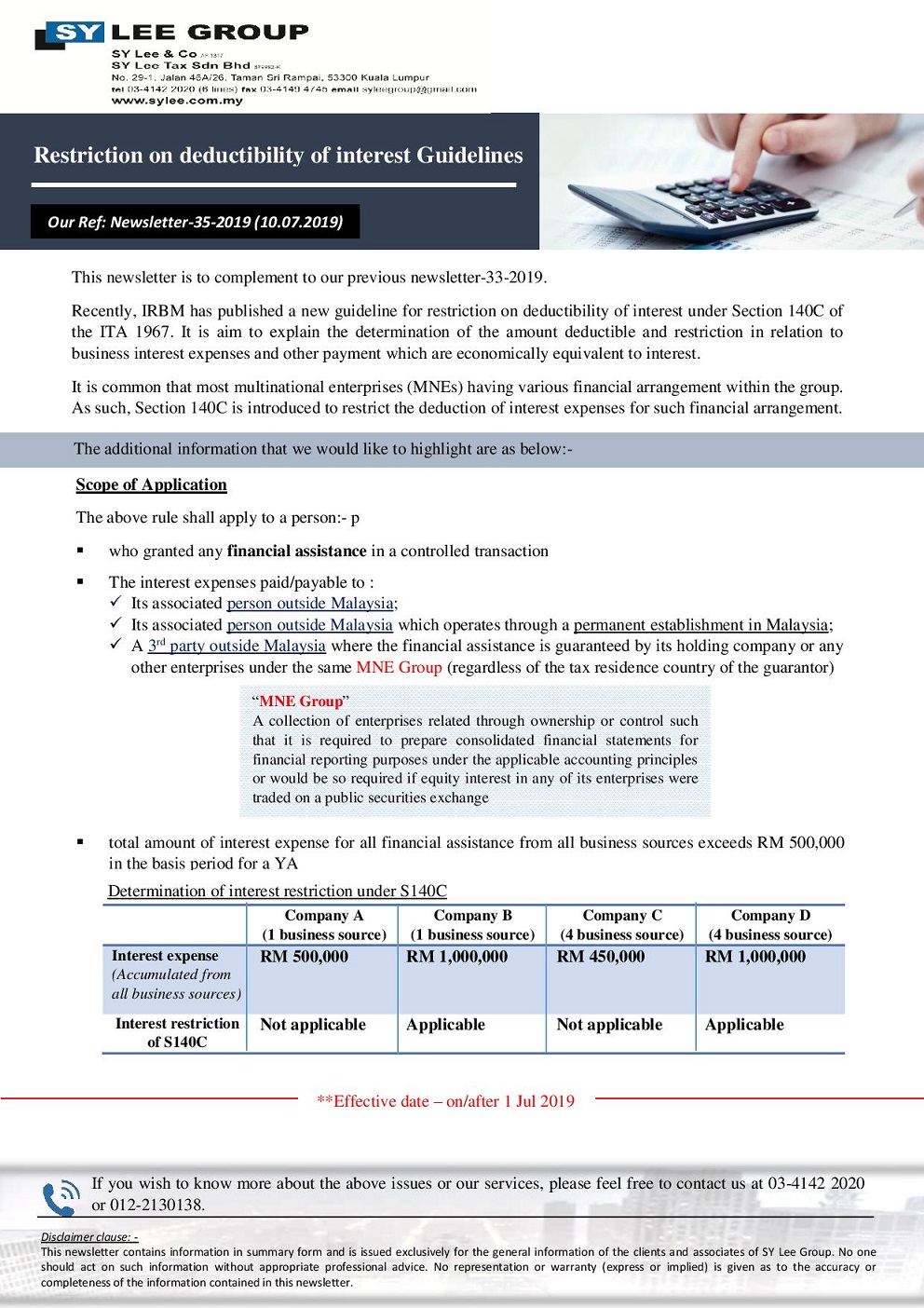Newsletter-35-2019-Restriction on deductibility of interest guidelines