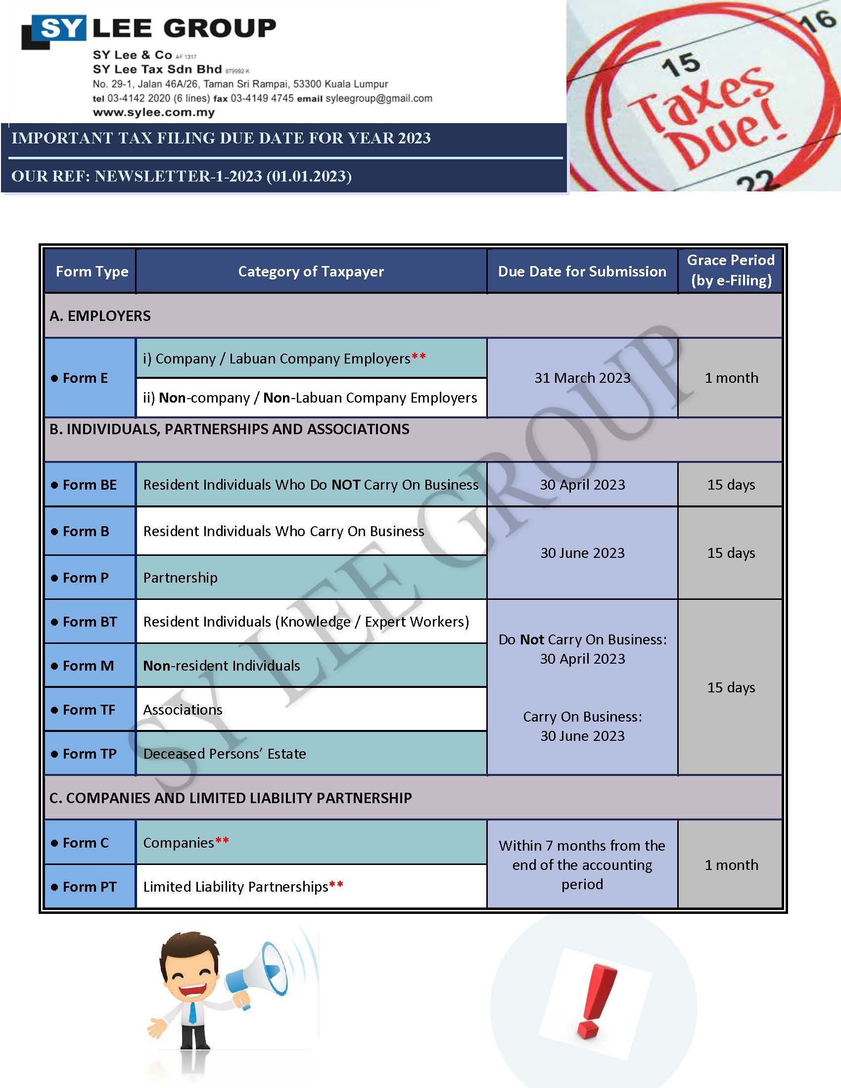 Newsletter-1-2023 - Important Tax Filing Due Date For Year 2023