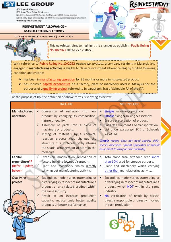 Newsletter-3-2023 - Reinvestment Allowance - Manufacturing Activity
