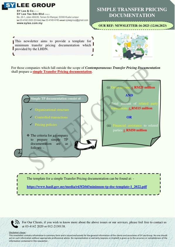 Newsletter-16-2023 - Simple Transfer Pricing Documentation