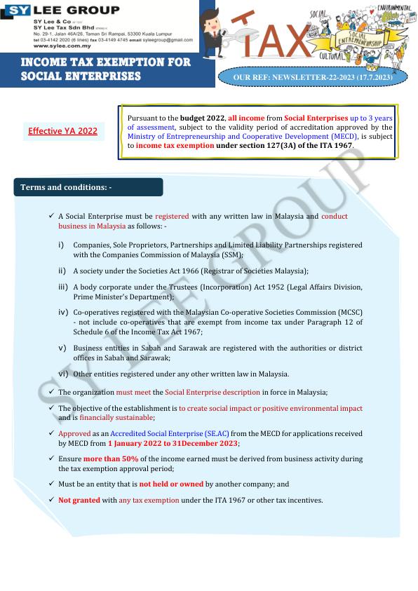 Newsletter-22-2023 - Income Tax Exemption for Social Enterprises