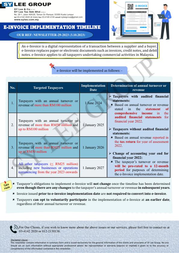 Newsletter-29-2023 - E-Invoice Implementation Timeline