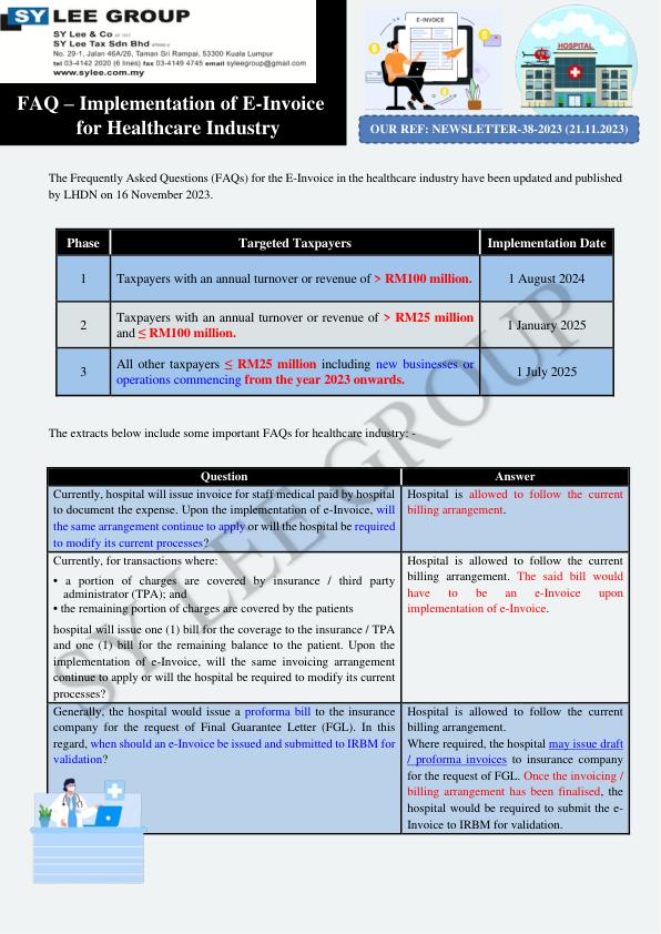 Newsletter-38-2023 - FAQ - Implementation of E-Invoice for Healthcare Industry