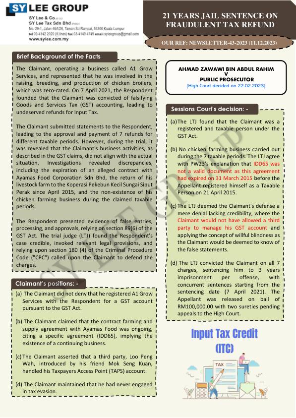 Newsletter-43-2023- 21 Years Jail Sentence for Fraudulent Tax Refund
