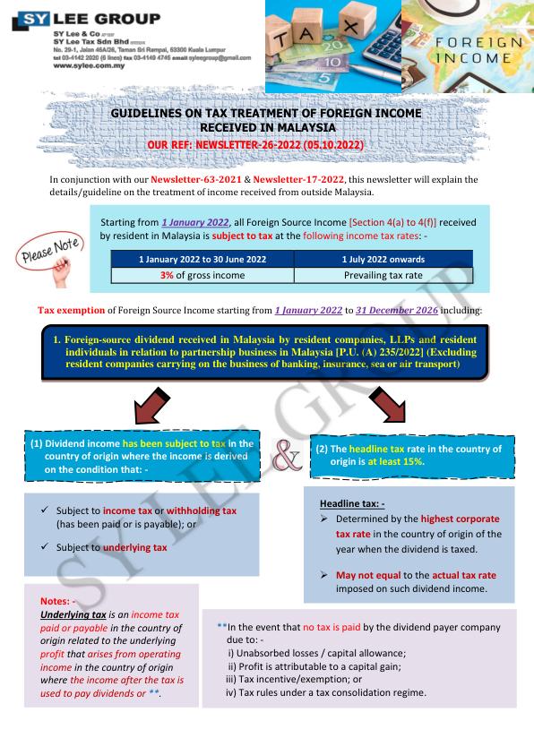 Newsletter-26-2022 - Guidelines on Tax Treatment of Foreign Income Received in Malaysia