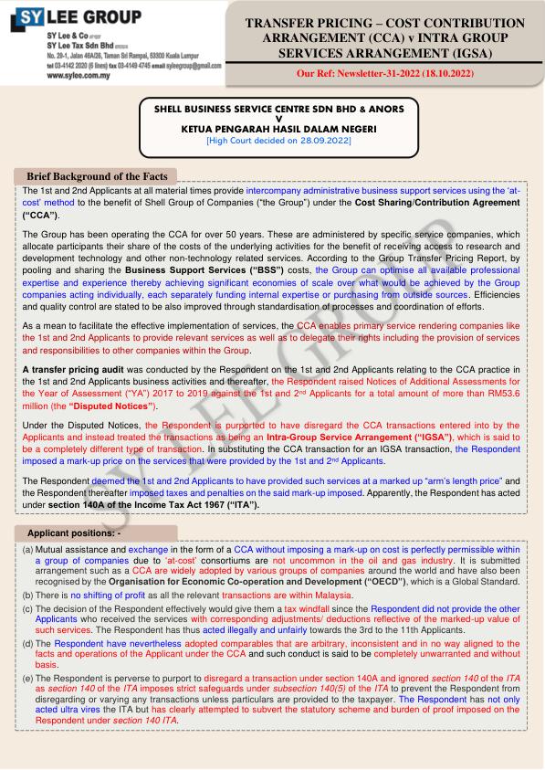 Newsletter-32-2022 - Transfer Pricing - Cost Contribution Agreement (CCA_ ) Intra Group Services